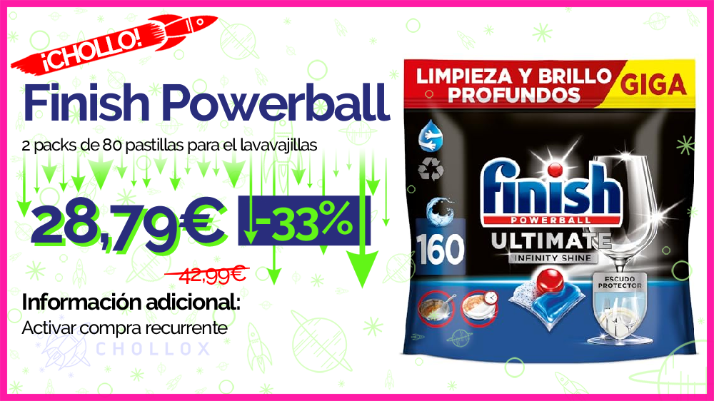 💥 🔉 Finish Powerball Ultimate Infinity Shine - 2 packs de 80 pastillas para el lavavajillas #Amazon