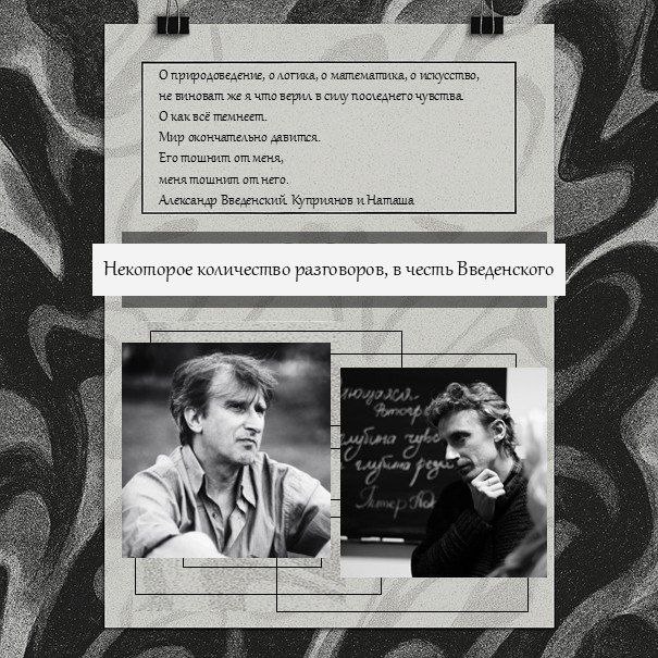 Во вторник, 15 апреля, мы начинаем цикл диалогов Александра Скидана и Ильи Мавринского "Некоторое количество разговоров, в честь Введенского"