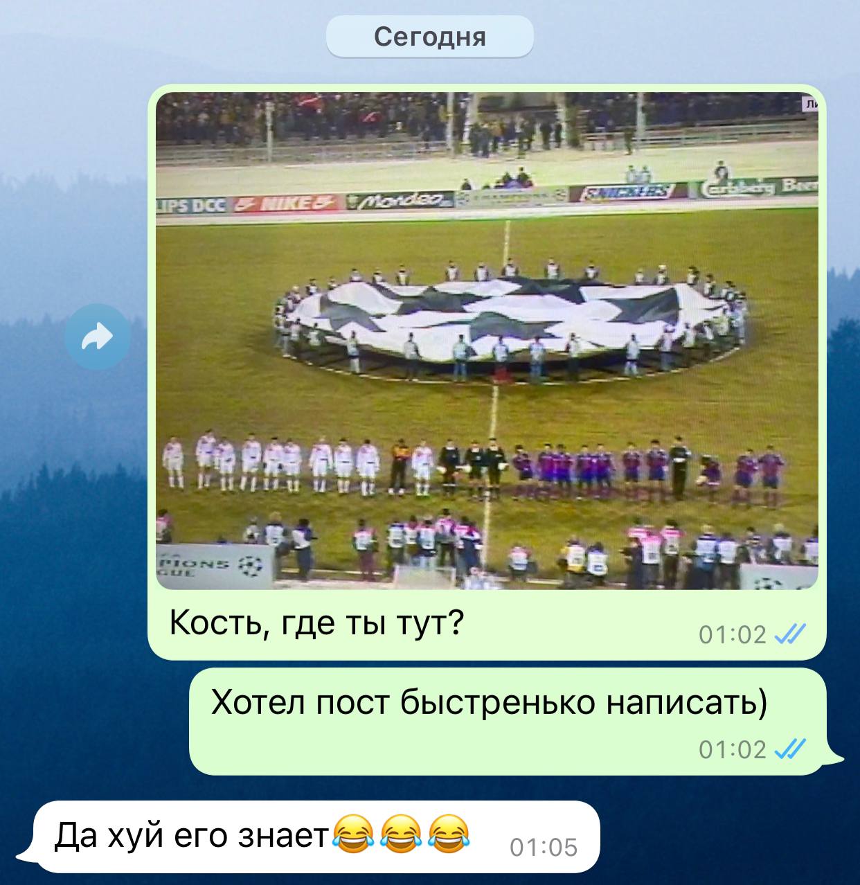 Сегодня на одном из каналов Матча был Спартак - Барселона. Пока Карпин, Бакеро, Ромарио и Дмитрий Хлестов слушали гимн Лиги Чемпионов, звёздное полотно тряс Константин Генич. Ровно за 20 лет до своего первого финала этого турнира.