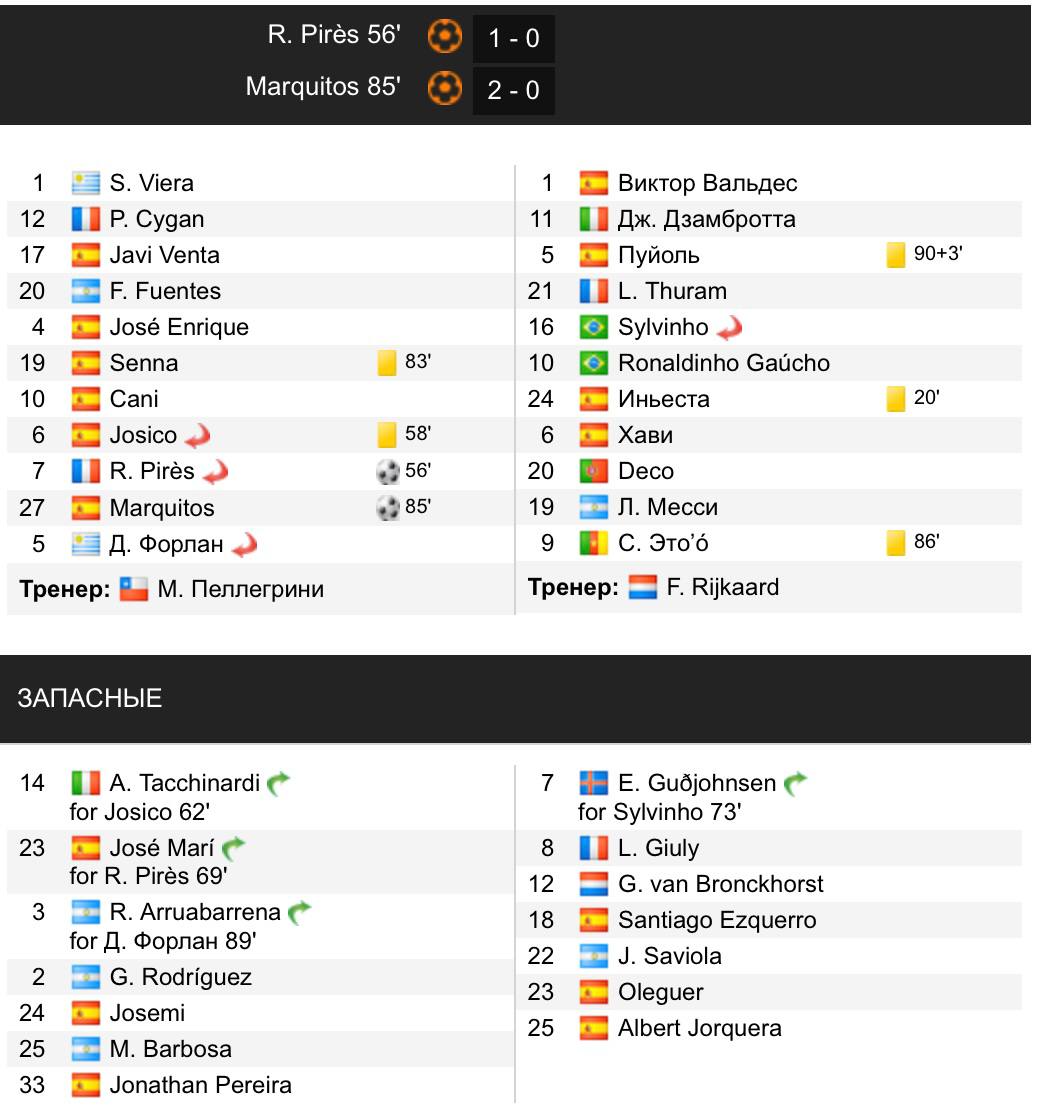 В 2007 году, Маркитос забил один из двух голов Барсе и Вильярреал победил 2:0. Вы только гляньте на составы 🥹