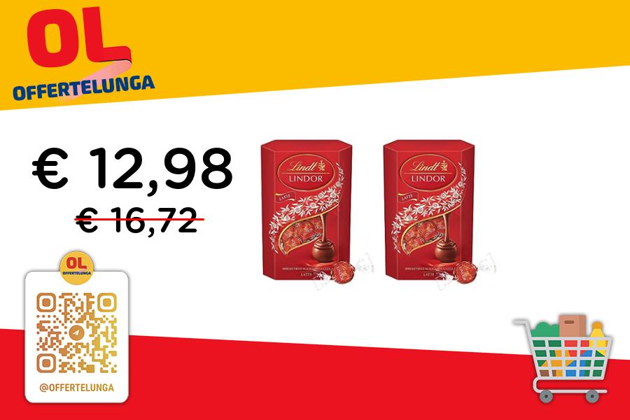 🍫 Lindt LINDOR Praline Cioccolato Latte | 16 cioccolatini | 200 g (Confezione da 2)