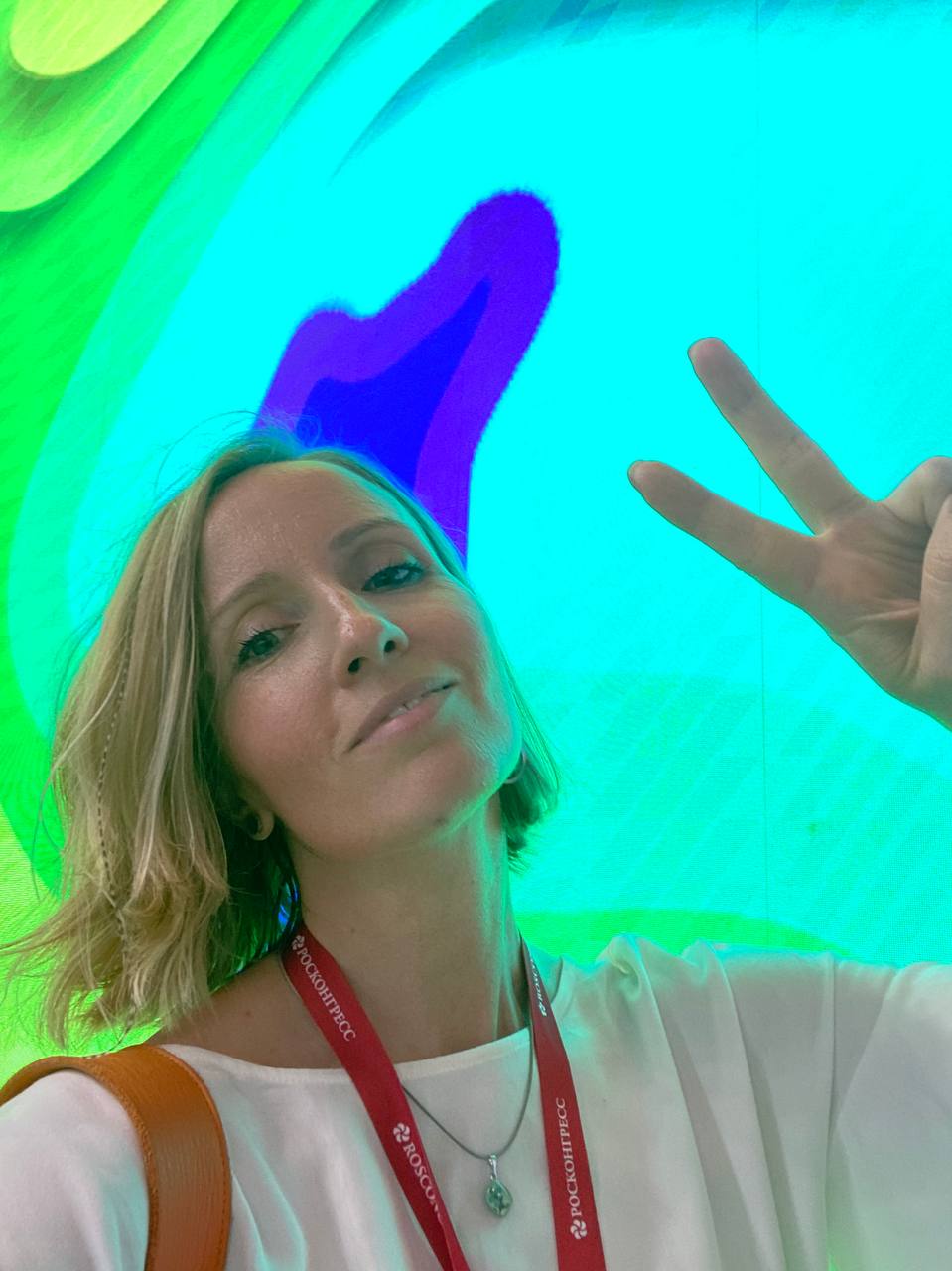 Кстати на фотографии Настя передаёт привет со стенда Газпром-нефти, созданном в партнёрстве с медиа-художником Максимом Жестковым. Датчики на стенде с помощью нейросети позволили создавать и транслировать на фасаде цифровые копии зрителей. В арт-проекте нефтяников поучаствовал настин любимый питерский хореограф Владимир Варнава, создавая визуально двигательные метафоры технологий - от ИИ до блокчейн контрактов.