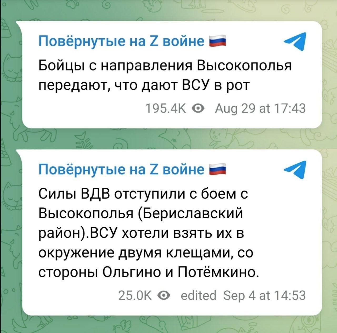Для ілюстрації даю скрін з російського тг-каналу, як вони писали про початок контрнаступу на півночі Херсонщини в кінці літа минулого року, де діяв мій підрозділ. Всі ми добре пам’ятаємо, чим він в результаті скінчився для окупантів 😀