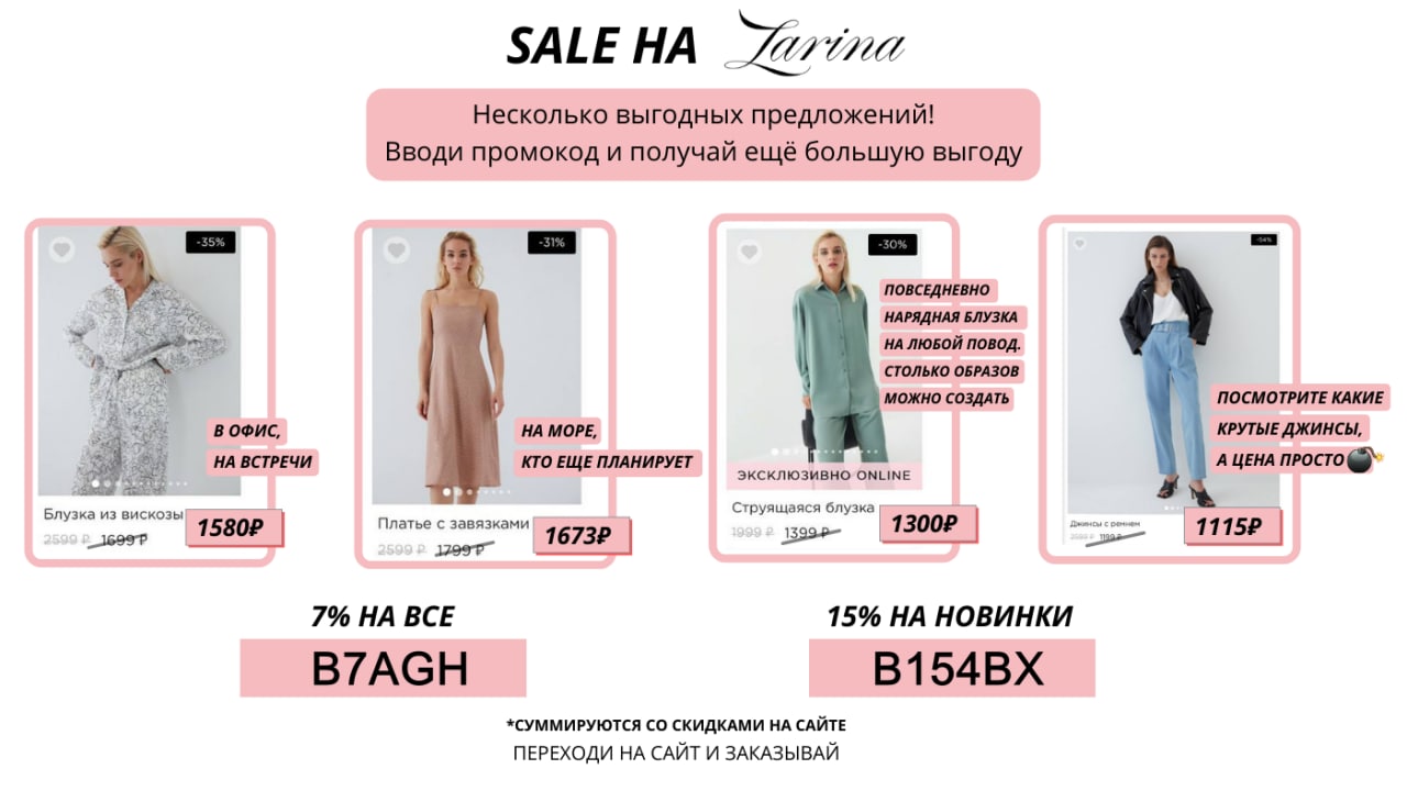 🔥 Межсезонная распродажа! Скидки до 85% + доп.скидка по промокоду в Zarina!
