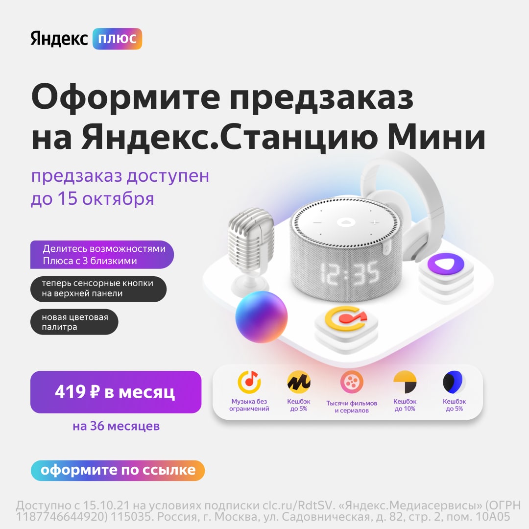 🎁 Яндекс.Станция Мини — оформи предзаказ до 15 октября! 🎁
