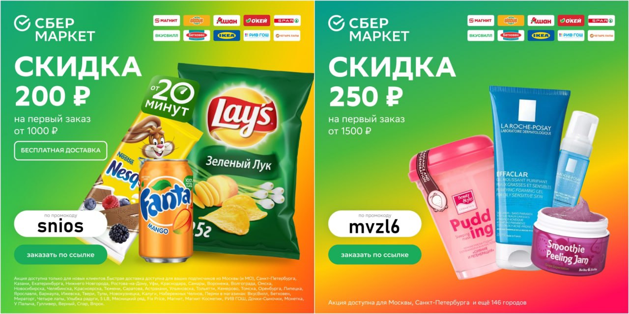 ⚡️ Актуальные промокоды на первый заказ в СберМаркет! ⚡️