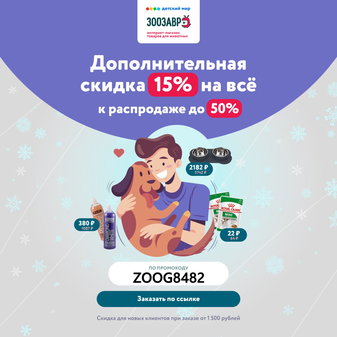 🐶 Зоозавр — дополнительная скидка 15% на первый заказ! 🐶