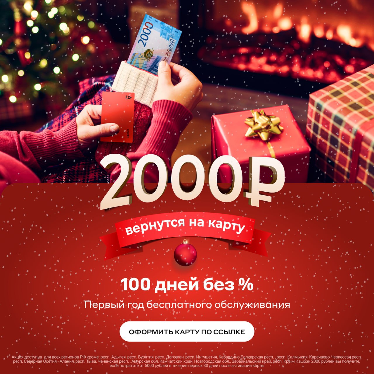 Оформи кредитную карту “100 дней без процентов” по уникальной ссылке, получи первый год бесплатного обслуживания и кэшбэк 2 000 руб.