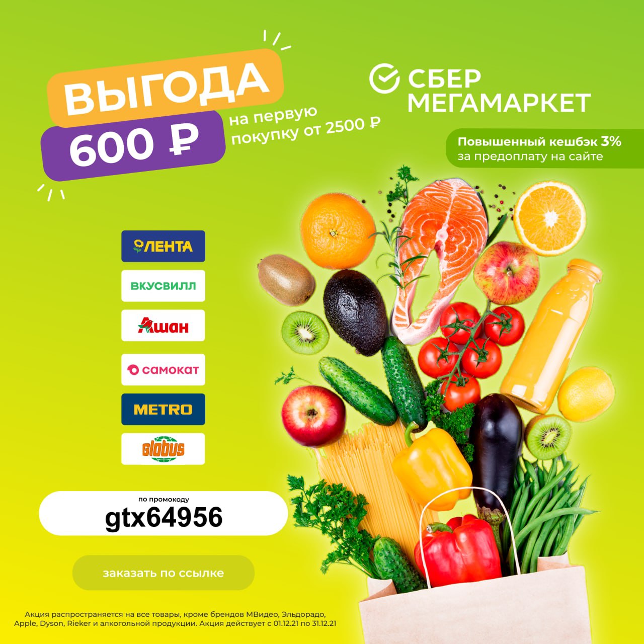 🎁 Выгода 600 руб. от 2 500 руб. для новых пользователей на все категории в СберМегаМаркет! 🎁