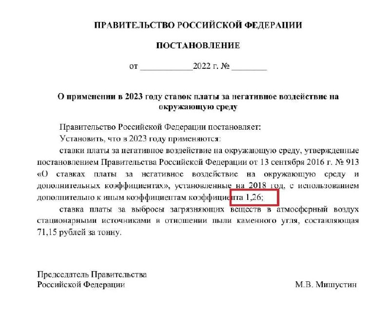 Минприроды предлагает повысить в 2023 году на 6% ставки платы за НВОС (негативное воздействие на окружающую среду). Проект постановления Правительства направлен на согласование в федеральные органы исполнительной власти.