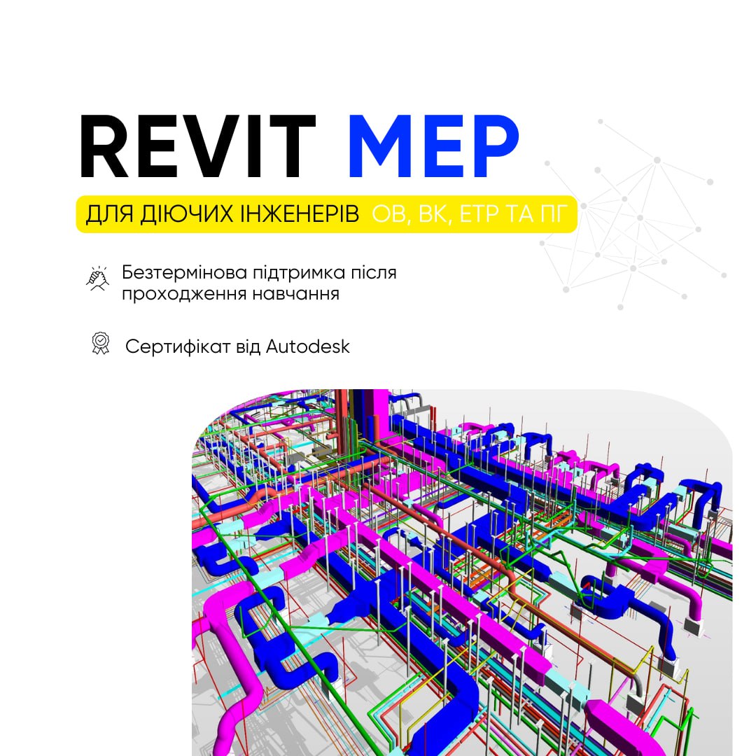 • Готовність до роботи — після завершення програми ви будете впевнено працювати з MEP-системами в Revit.