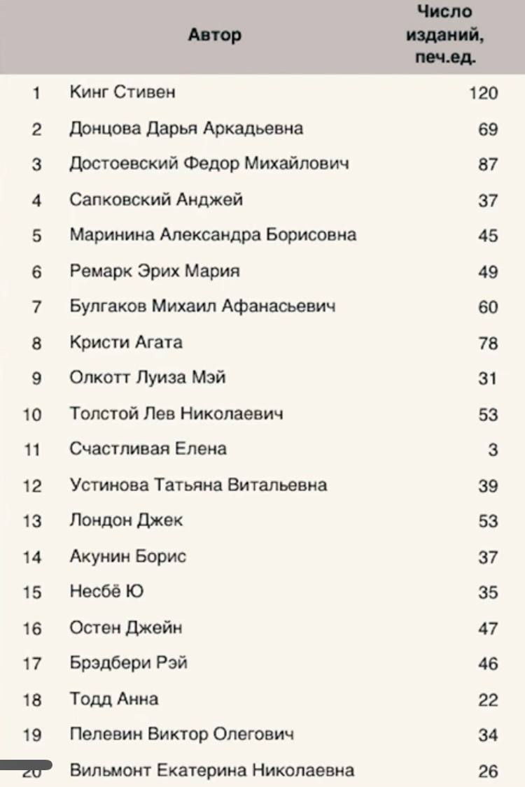 Акунин и Пелевин потеряли позиции в сравнении с 2019, но я верю в них, ещё поднимутся товарищи!)