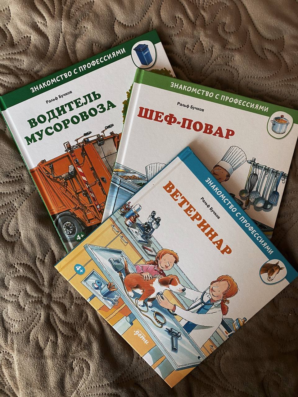 Сегодня в рамках #детскаяпятница хочу познакомить вас с целой серией книг, которые подождут деткам старше 4 лет. На фото три вышедшие «Ветеринар», «Водитель мусоровоза» и «Шеф-повар». Также доступны к покупке «Водитель автобуса» и «Строитель».