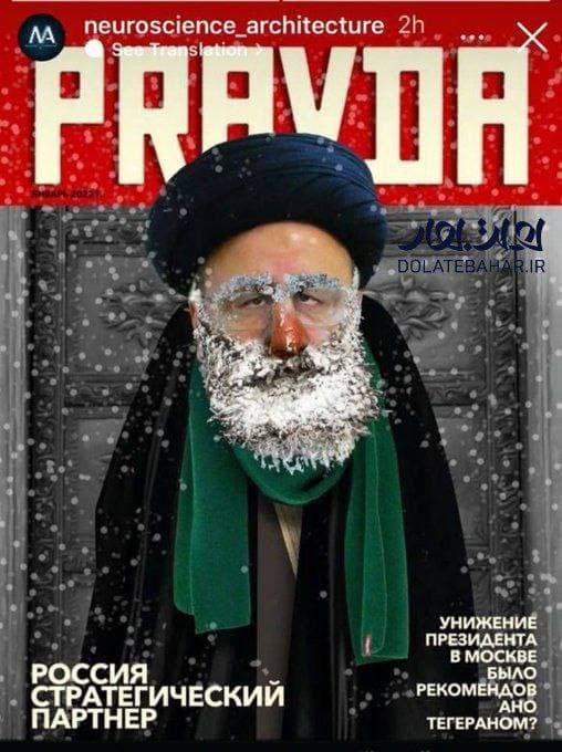 ❗️Западные СМИ, так жаждующие подлить масла в огонь, лишь бы облить грязью Россию и Иран в том числе, не удосужившись провести элементарный журналисткий факт-чекинг (хотя сомневаемся, что они не знали, что есть в РФ еще с советских времен газета «Правда»!) публикуют этот фейк-постер. Отличилась тут Independent Farsi.