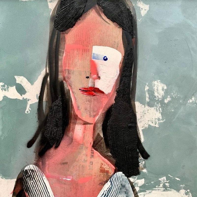 В экспозицию вошла серия экспрессивных портретов, выполненных в смешанной технике.