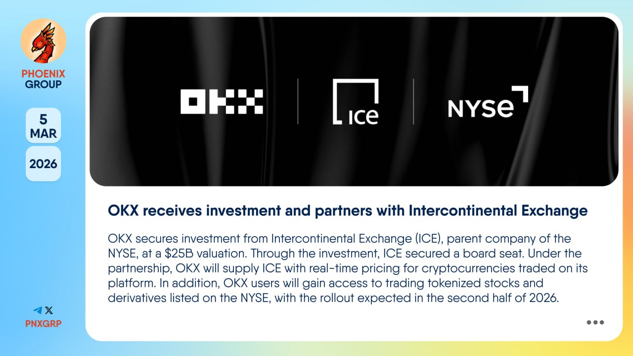 #OKX secures investment from #IntercontinentalExchange #ICE, parent company of the #NYSE, at a $25B valuation. Through the investment, ICE secured a board seat. Under the partnership, OKX will supply ICE with real-time pricing for cryptocurrencies traded on its platform. In addition, OKX users will gain access to trading tokenized stocks and derivatives listed on the NYSE, with the rollout expected in the second half of 2026.