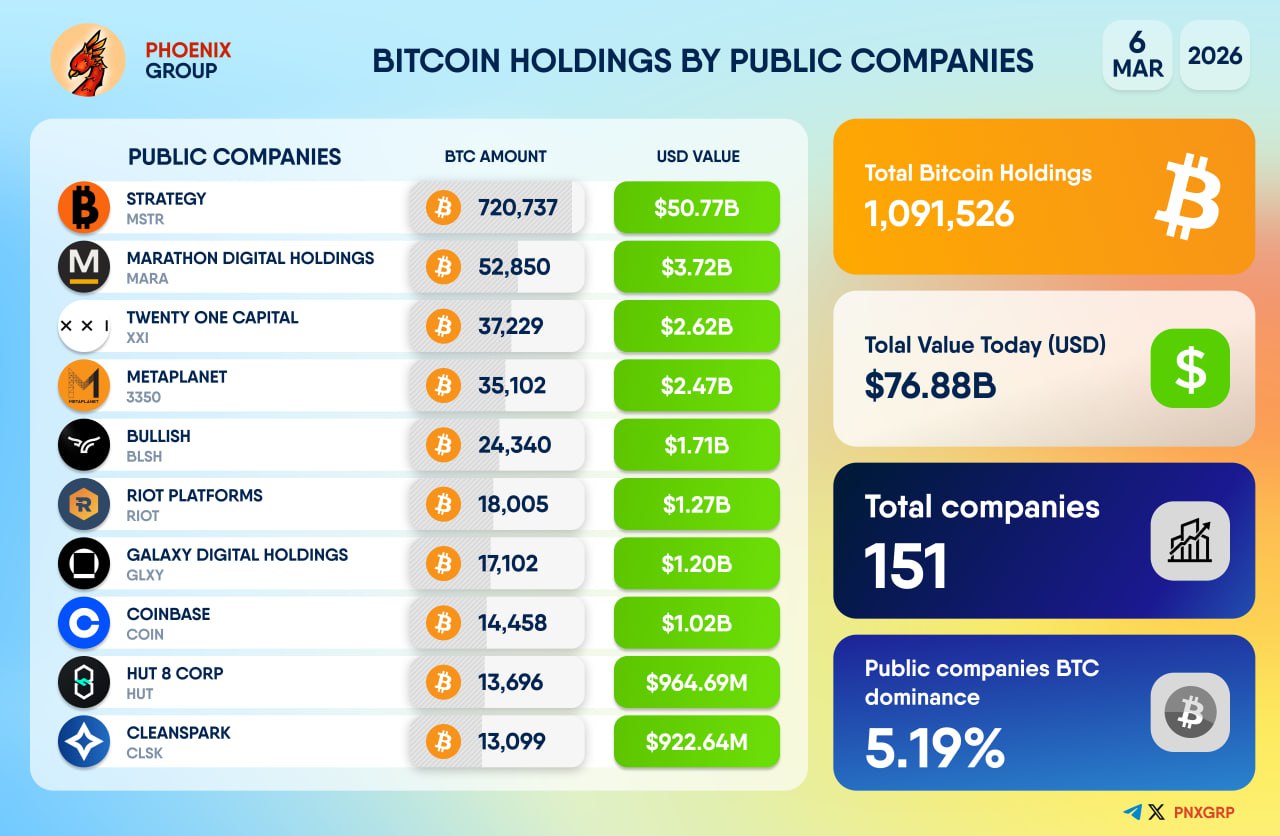 Public companies continue to expand their Bitcoin holdings, solidifying cryptocurrency's role in traditional financial markets. With industry leaders like #Strategy holding substantial amounts, the total $BTC reserved by these firms now surpasses an impressive 1,091,526 $BTC, representing significant confidence in Bitcoin's long-term value. As the market matures, these holdings underscore the evolving relationship between traditional institutions and digital assets.
