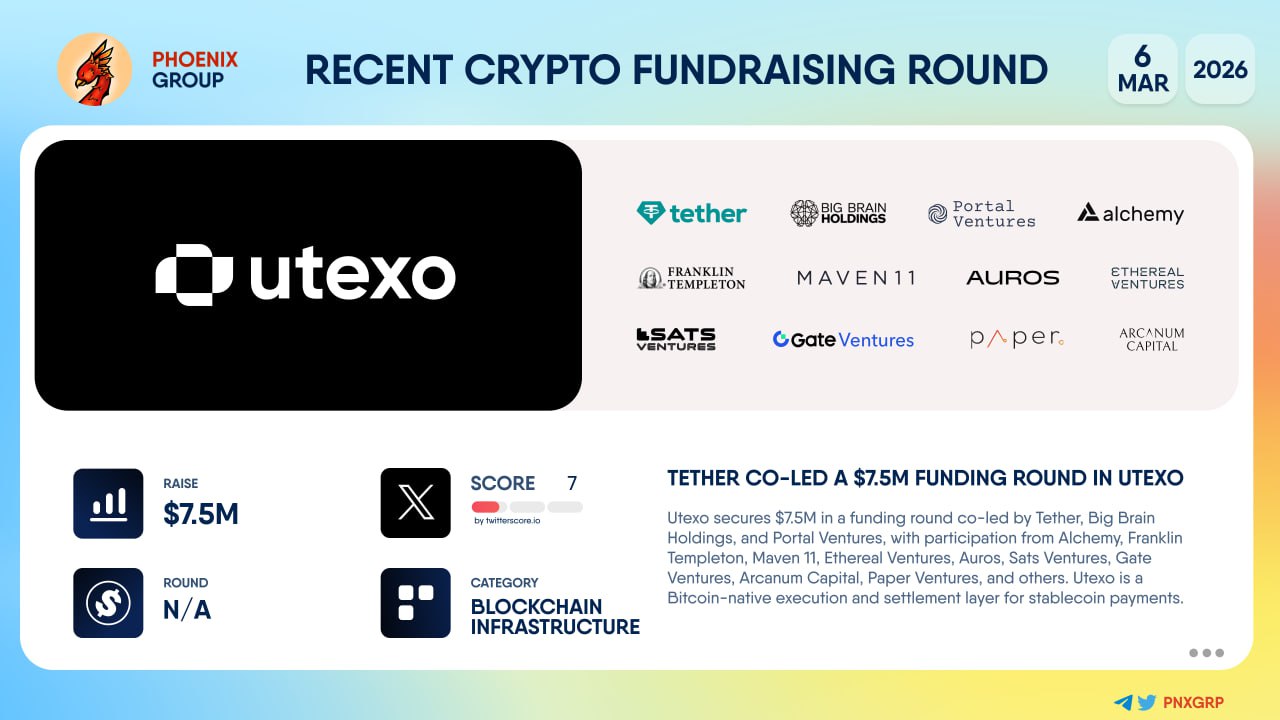 #Utexo secures $7.5M in a funding round co-led by Tether, Big Brain Holdings, and Portal Ventures, with participation from Alchemy, Franklin Templeton, Maven 11, Ethereal Ventures, Auros, Sats Ventures, Gate Ventures, Arcanum Capital, Paper Ventures, and others.