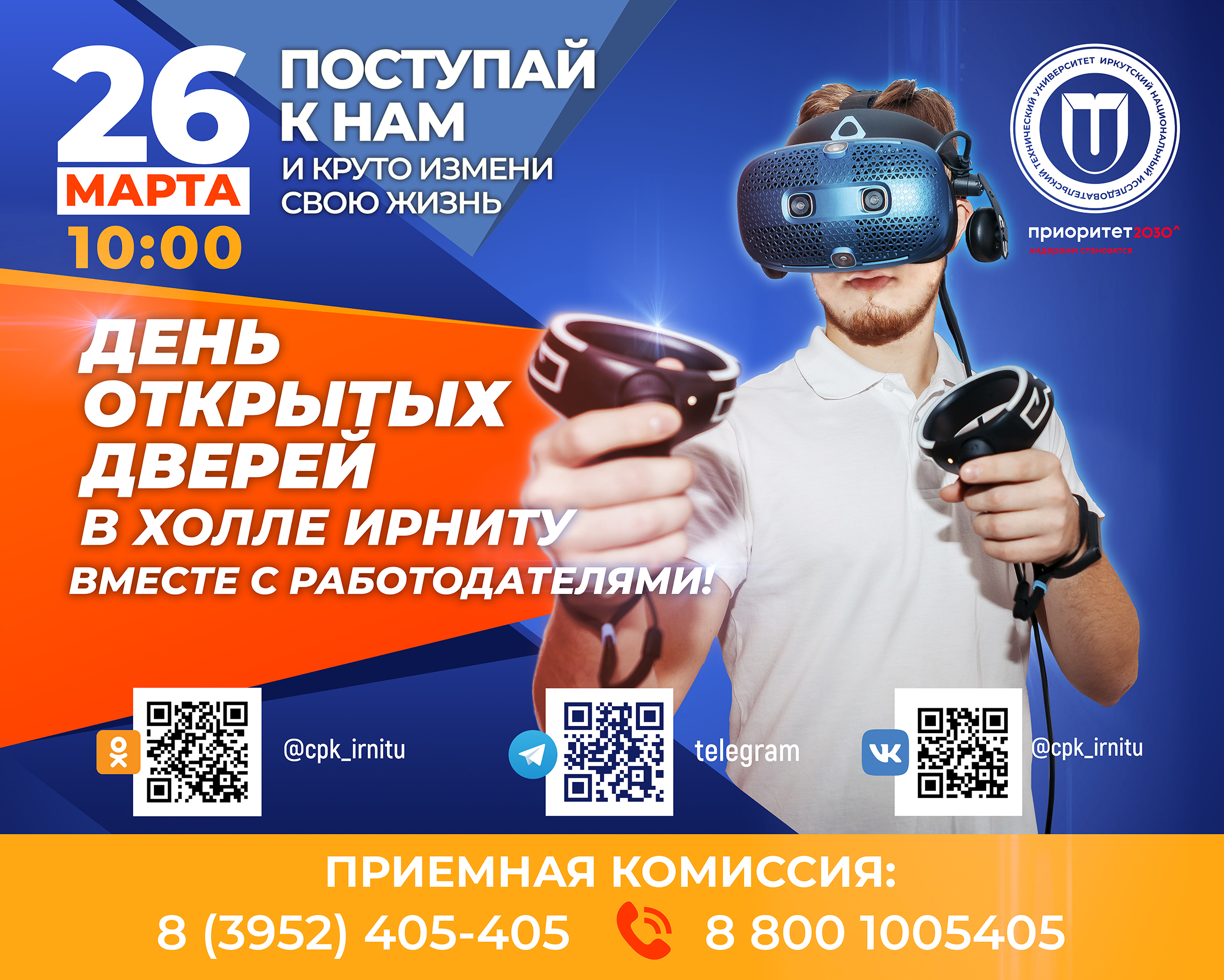 ДЕНЬ ОТКРЫТЫХ ДВЕРЕЙ ИРНИТУ – уникальная возможность познакомиться с университетом и с потенциальными РАБОТОДАТЕЛЯМИ. Приглашаем школьников, родителей и педагогов!