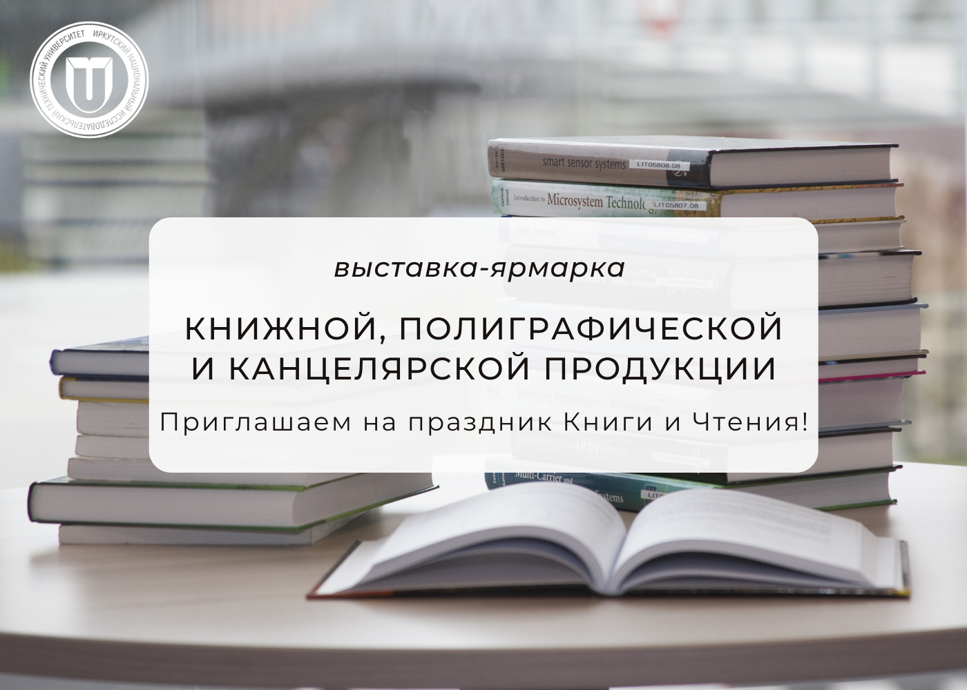 Издательство учебной литературы и учебно-методических пособий и НТБ ИРНИТУ приглашают на выставку-ярмарку книжной, полиграфической и канцелярской продукции, посвященную празднованию Всемирного дня книги и авторского права.