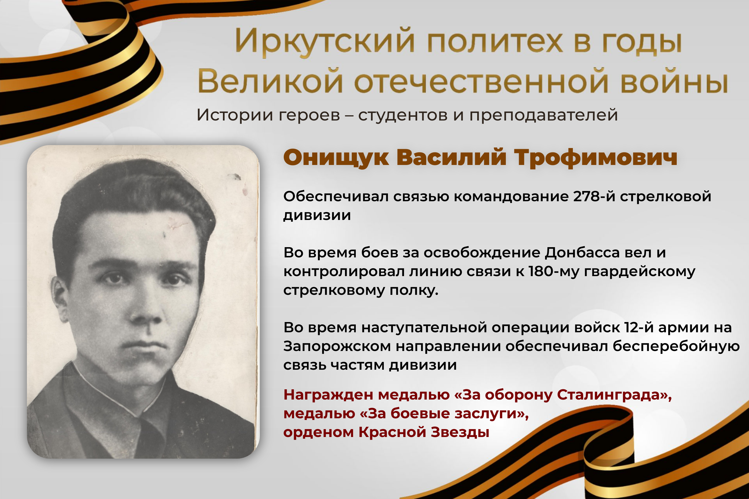 В рамках цикла публикаций «Иркутский политех в годы Великой Отечественной войны» продолжаем делиться историями героев – студентов и преподавателей университета: