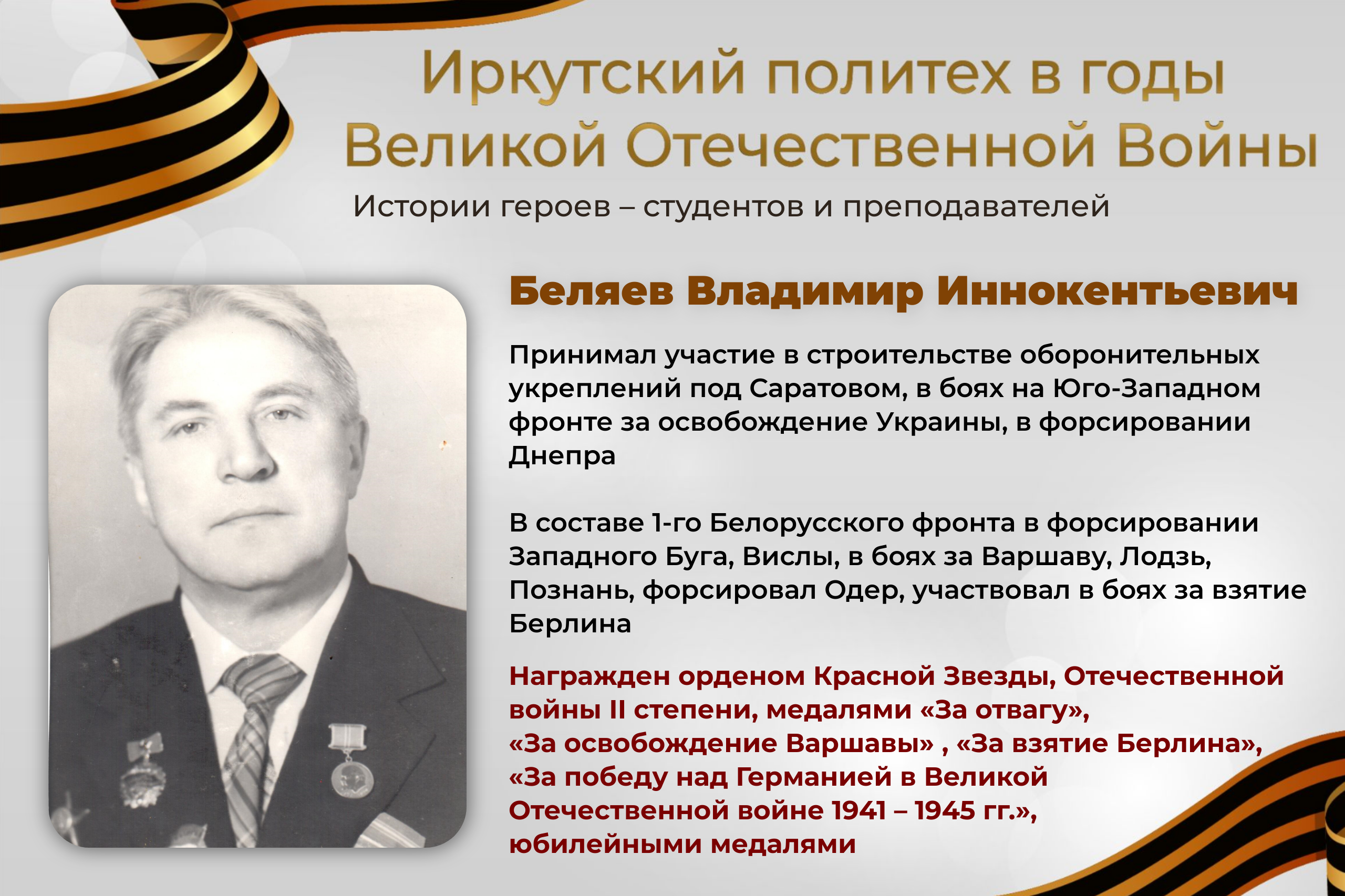 Продолжаем цикл публикаций «Иркутский политех в годы Великой Отечественной войны» и рассказываем о героях – студентах и преподавателях университета: