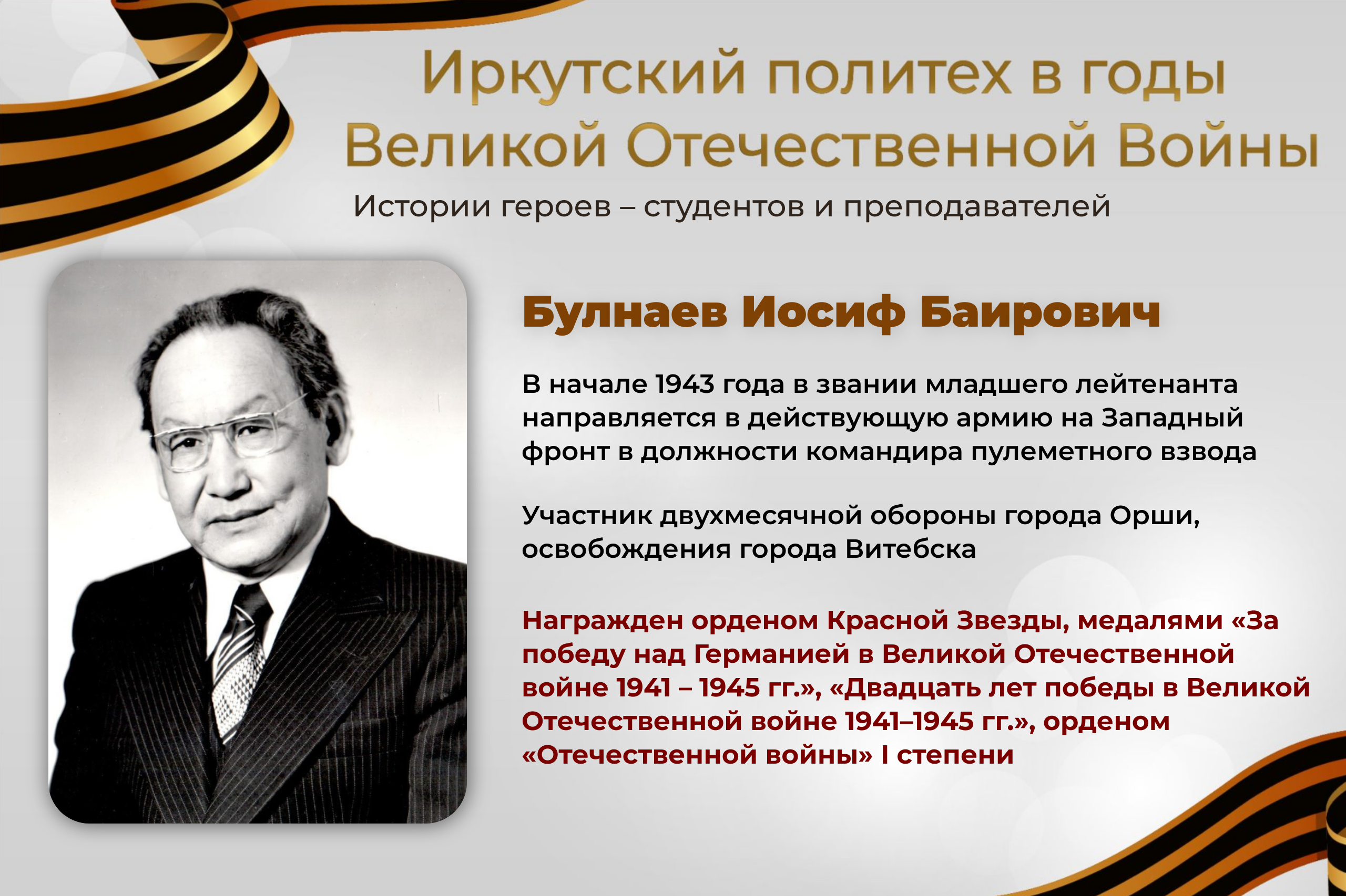 В рамках цикла публикаций «Иркутский политех в годы Великой Отечественной войны» продолжаем делиться историями героев – студентов и преподавателей университета: