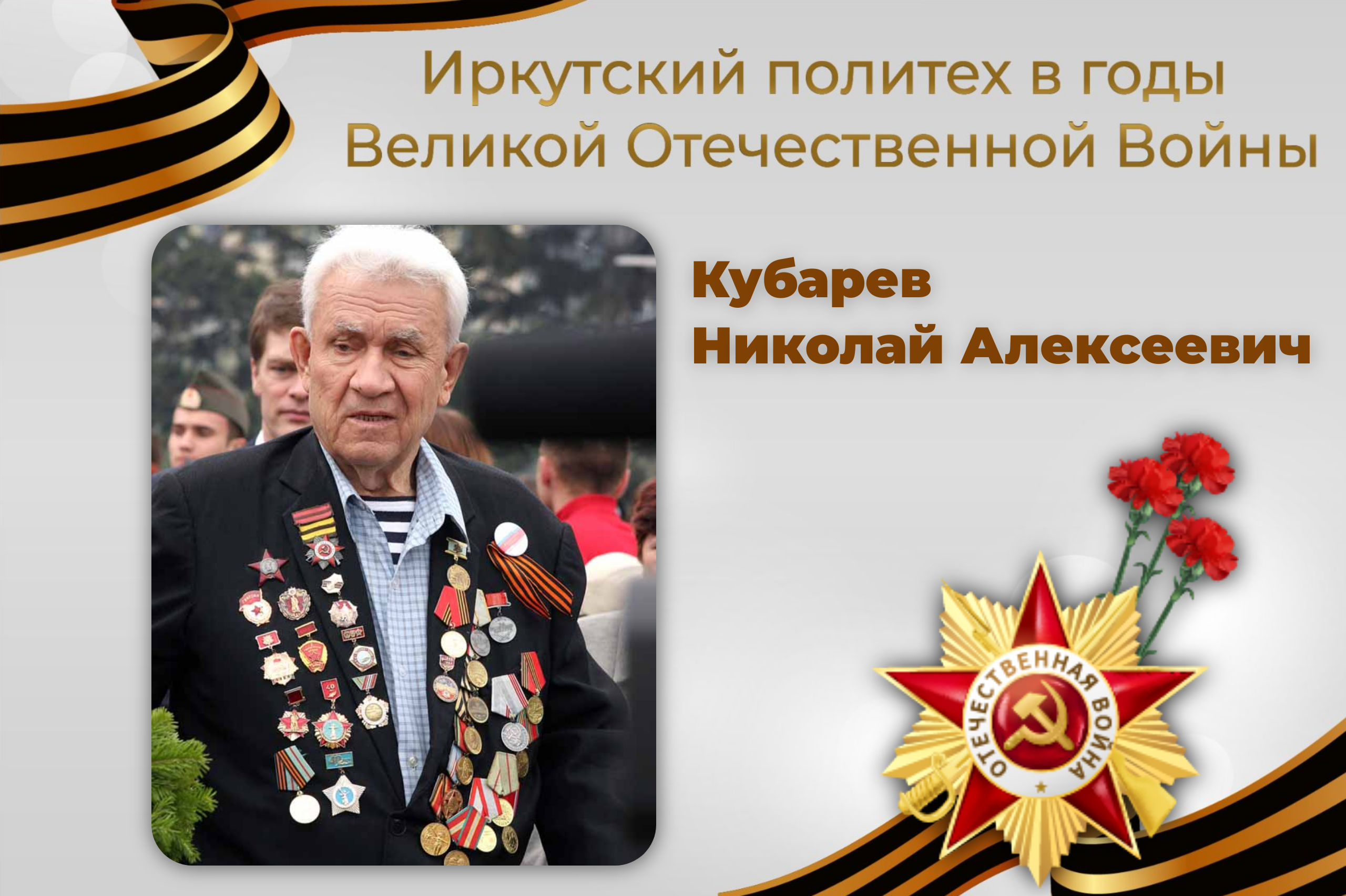 Николай Алексеевич Кубарев родился в 1923 году в г. Нижне-Удинске Иркутской области. В 1941 г. окончил 11 среднюю школу Иркутска и был призван в армию. Участвовал в боях под Москвой, оборонял Сталинград, воевал на Балтике.