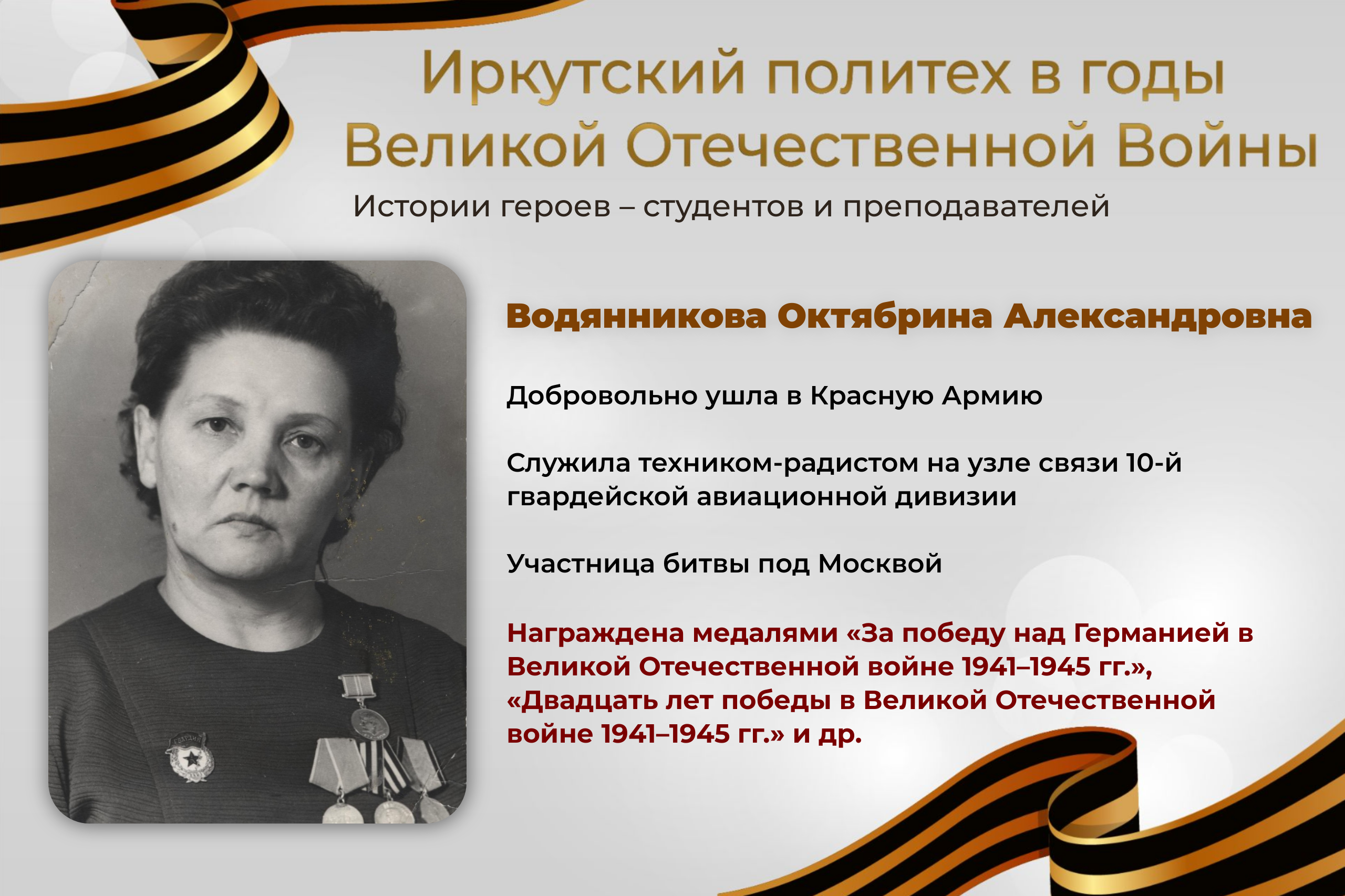 В рамках цикла публикаций «Иркутский политех в годы Великой Отечественной войны» продолжаем делиться историями героев – студентов и преподавателей университета: