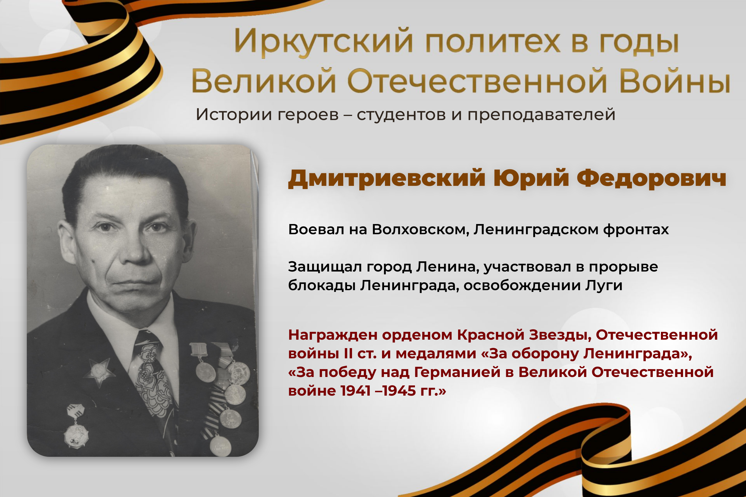 В рамках цикла публикаций «Иркутский политех в годы Великой Отечественной войны» продолжаем делиться историями героев – студентов и преподавателей университета: