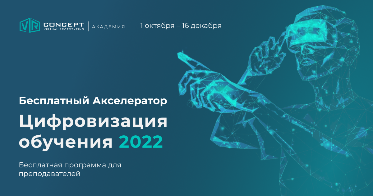 С 1 октября по 16 декабря наш партнёр Академия VR Concept запускает международную программу Акселератор «Цифровизация Обучения» 2022, цель которой внедрение VR-технологий в обучение, в соответствии с целями национальных проектов России.