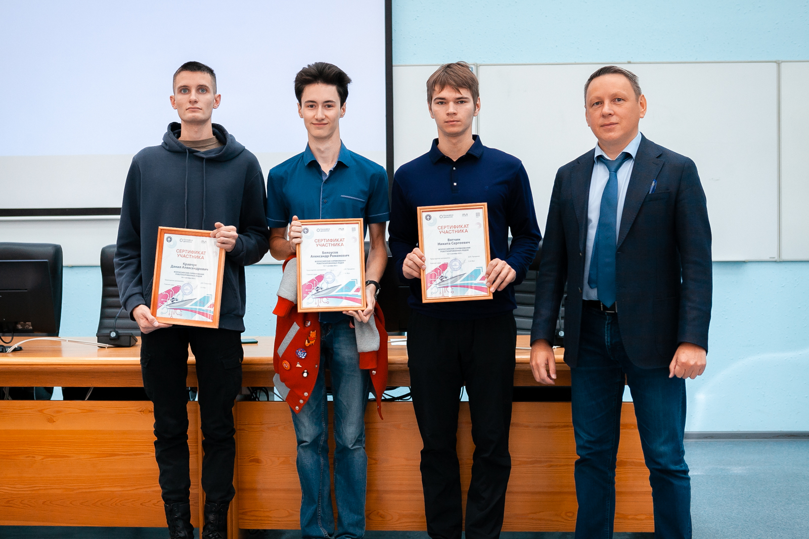 Организаторы Всероссийских соревнований роботизированных лодок поблагодарили ИРНИТУ за подготовку талантливых студентов. И.о. ректора Морского государственного университета им. адмирала Г.И. Невельского Андрей Конотоп направил приветственный адрес Михаилу Корнякову, в котором отметил высокий уровень навыков политеховцев в области роботизированных технологий.