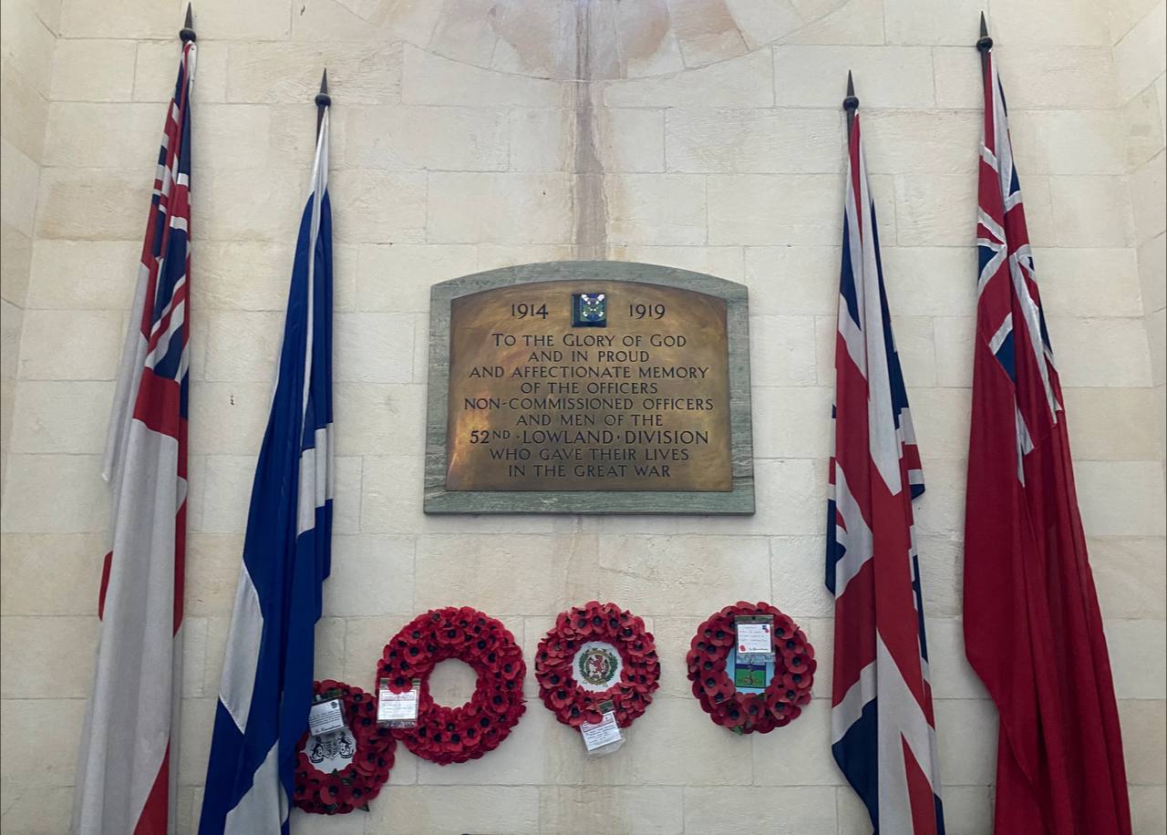 Наприклад, не можу назвати себе дуже релігійним, але сьогодні зранку я помираю від неймовірної спеки, і чується церковний дзвін, що одразу ж відгукнувся «о, щось наше»! Незважаючи на мільйон тисяч градусів за Цельсієм, пішов я на цей дзвін, надибав шотландську церкву св. Андрія (який неочікуваний святий)🏰🙏 Традиційно, там були комеморативні таблички обрамлені прапорами щодо вшанування памʼяті загиблих у Великій війні, в тому числі і в Палестині. Знову відчуття: «це ж я теж є частиною саме цієї історї». Не історї війни Судного дня чи Шестиденної, а Великої війни, хоча загиблі британські солдати 52 дивізії мали би бути для мене такими самими далекими як і євреї Мордехая Гура.