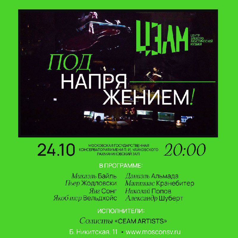 «Под напряжением!» — это не только погружение в мир электроакустической музыки и мультимедиа, но и чуткое наблюдение за состоянием духа современного человека. Программа представляет собой обширную рецепцию настоящей эпохи: от сосредоточенной медитации до истерии в ситуации непрерывного инфошума. Тонкое личное прикосновение сменяется нервным потоком — не это ли грани нашей современной идентичности?