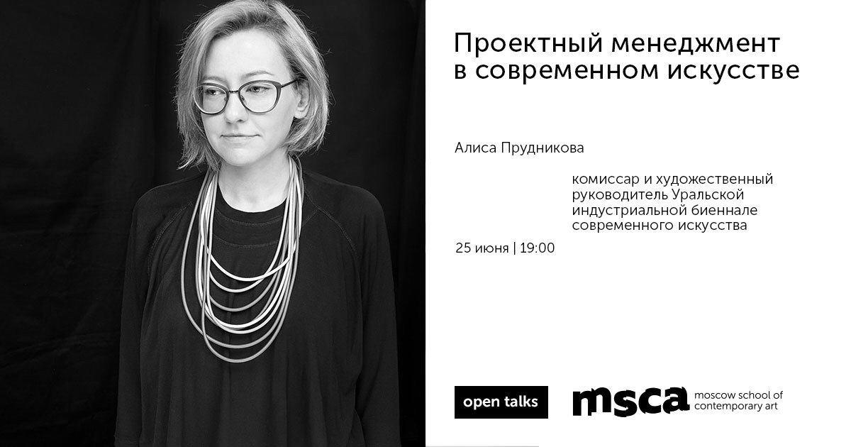 Сегодня в 19:00 в MSCA пройдет онлайн-встреча с комиссаром Уральской биеннале Алисой Прудниковой.