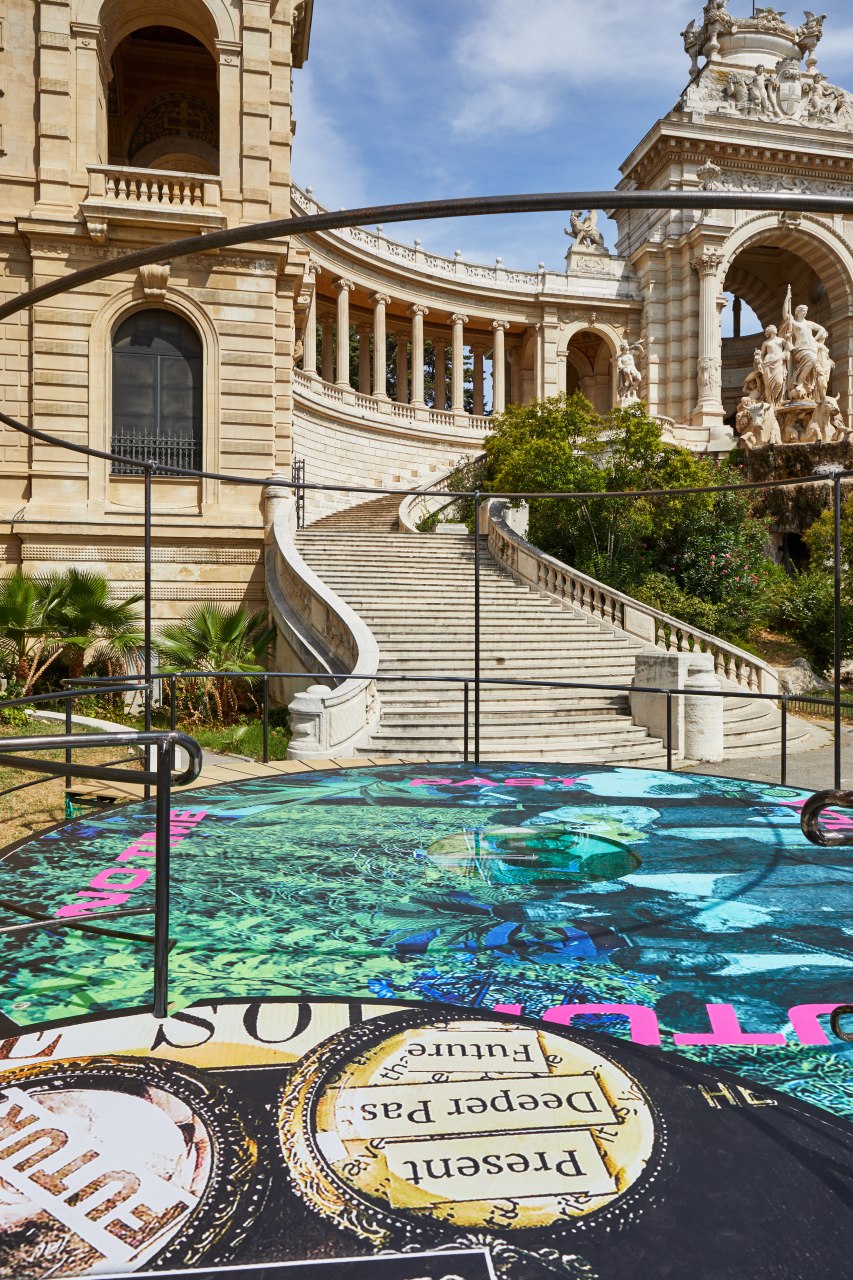 Эта история разворачивается в доме-музее буржуазной семьи 19 века, музее семьи Гробе-Лабадье. Семейные дома-музеи — это особенный тип музеев: замершие во времени, они работают как машина времени, которая “продает” нам сувениры из прошлого и питает наши фантазии о доме, которым не суждено сбыться. “Манифеста” предложила музею обратиться к настоящему, не отказываясь от исторической перспективы, — сдержанными жестами внутри постоянной экспозиции, в которой находятся работы коллектива из Филадельфии Black Quantum Futurism, в составе которого Camae Ayewa (также известная как Moor Mother) and Rasheedah Phillips, юрист и активистка Martine Derain, Lukas Duwenhögger, Jana Euler, Ken Okiishi, Cameron Rowland, Arseny Zhilyaev, Samia Henni и группа активистов из Марселя Noailles Debout».