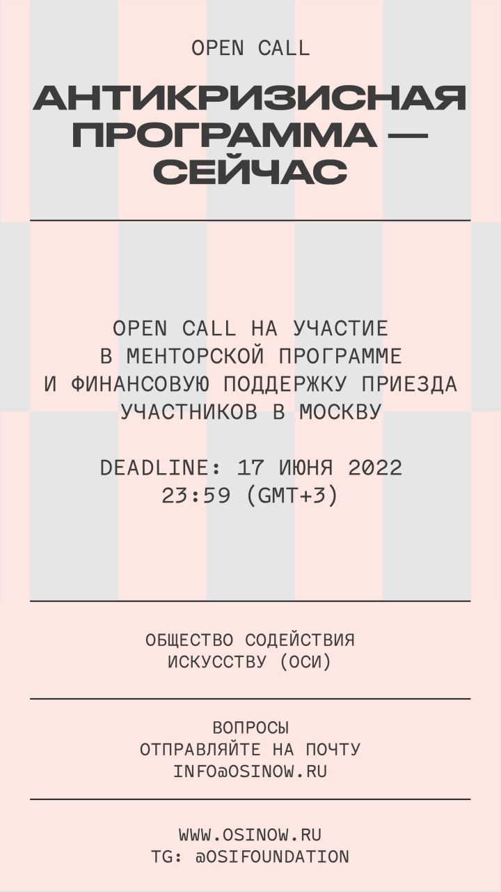 Общество содействия искусству объявляет Open Call для участия в антикризисной программе «Сейчас»