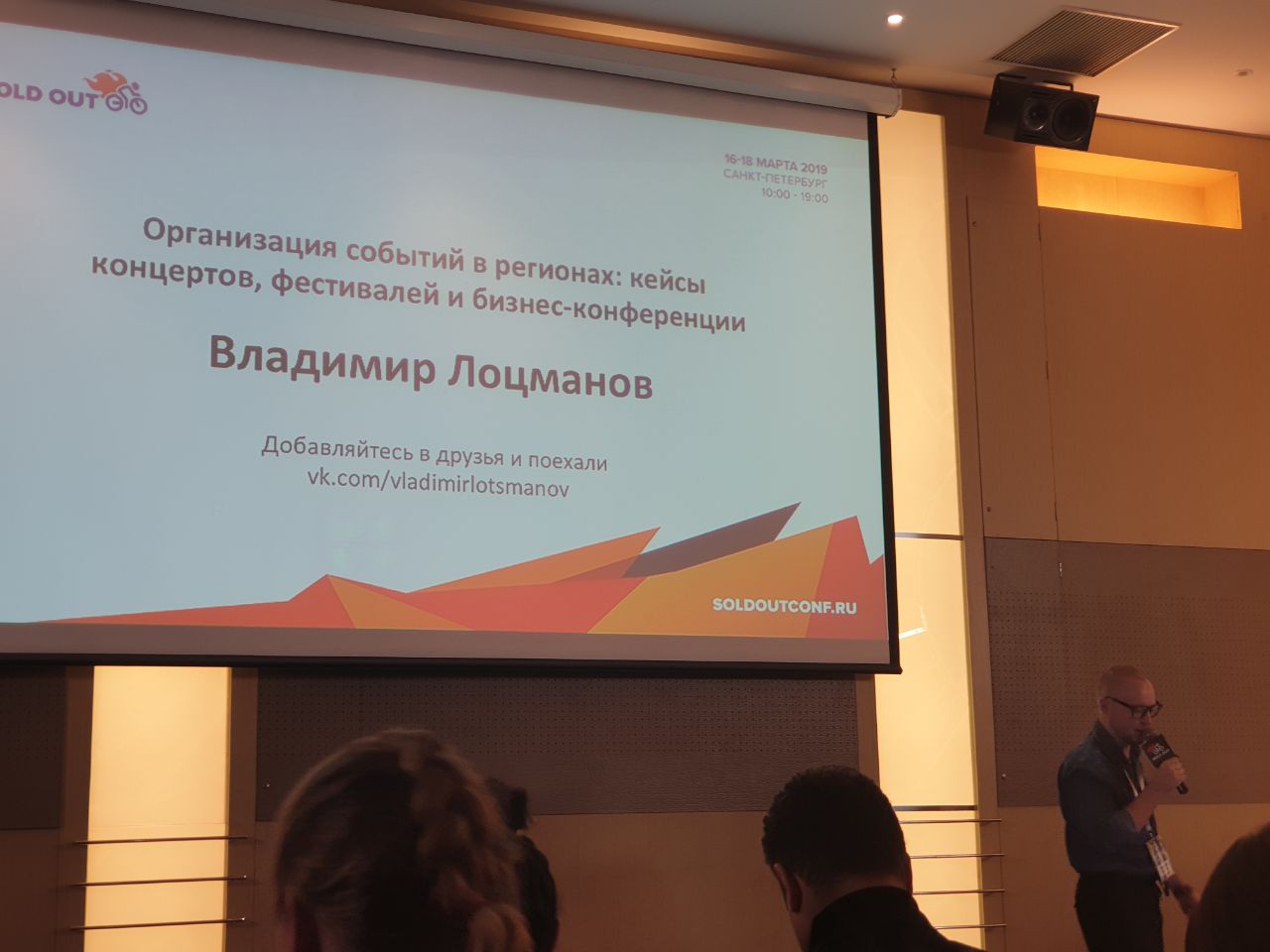 Начинается третья секция докладов. Я слушаю организатора event в Рязани Владимира Лоцманова "Организация событий в регионах: кейсы концертов, фестивалей и бизнес-конференций"