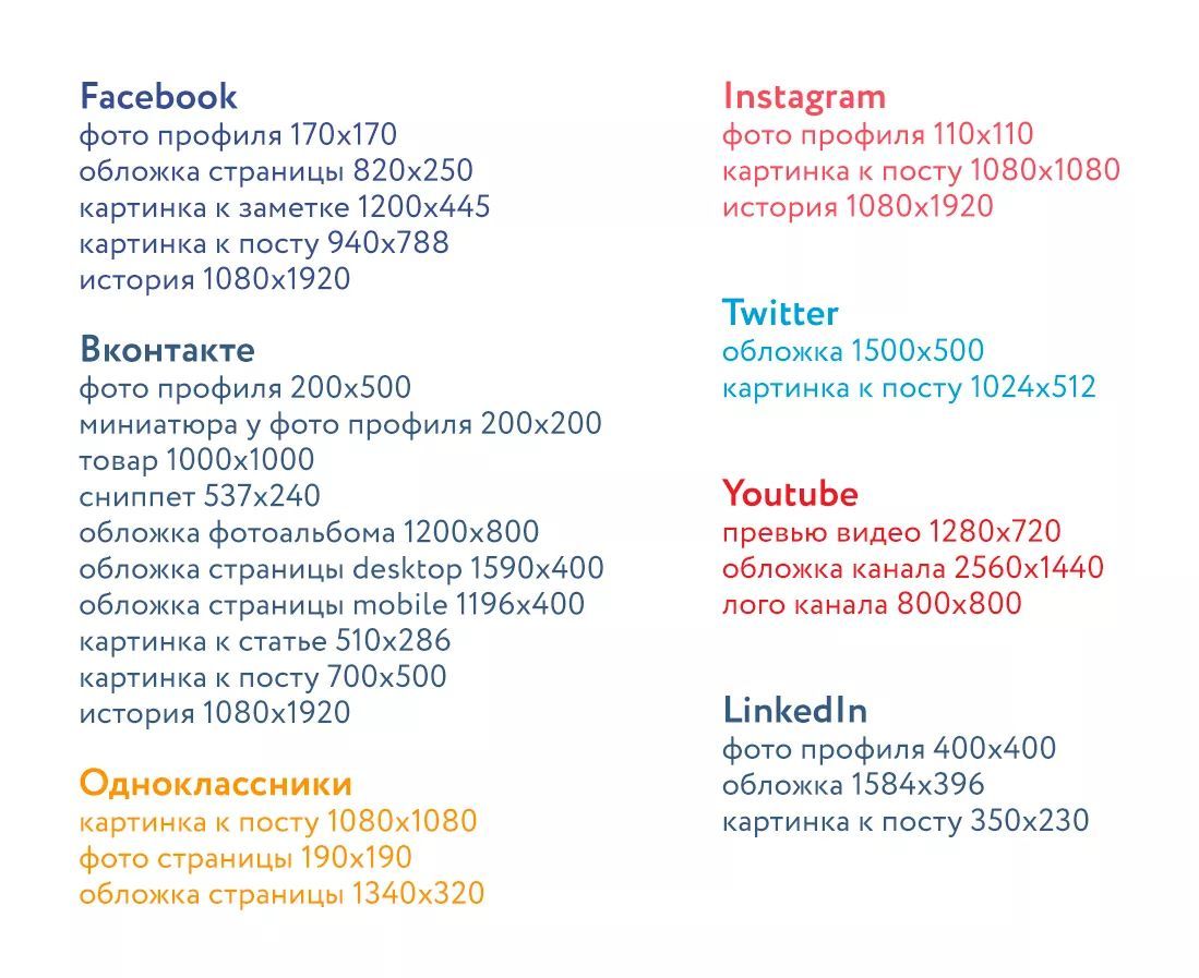 Раз уж начали говорить про соцсети. В каждой соцсети своя вёрстка и свои размеры элементов. Чтобы картинки не растягивались, не сжимались и не обрезались в неудачном месте, нужно следовать гайдлайнам.
