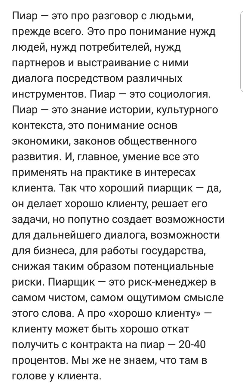 Интересное интервью для ленты от авторов анонимного канала "Беспощадный пиарщик" @prbezposhady на тему кризиса PR среди чиновников. Ну и о том, когда закончится эра глупых высказываний. Мне особенно понравилась вот эта мысль 👌