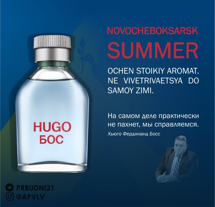 В поисках новых источников вдохновения креативный директор модного дома HUGO BOSS Инго Вилтс наткнулся в интернете на заметки о г.Новочебоксарск Чувашской Республики. Вдохновленный отзывами горожан о необычных ароматах этого места, Инго предложил коллаборацию стратегическому предприятию, обеспечивающему жизнедеятельность ключевых городов Чувашской Республики – ГУП «БОС».