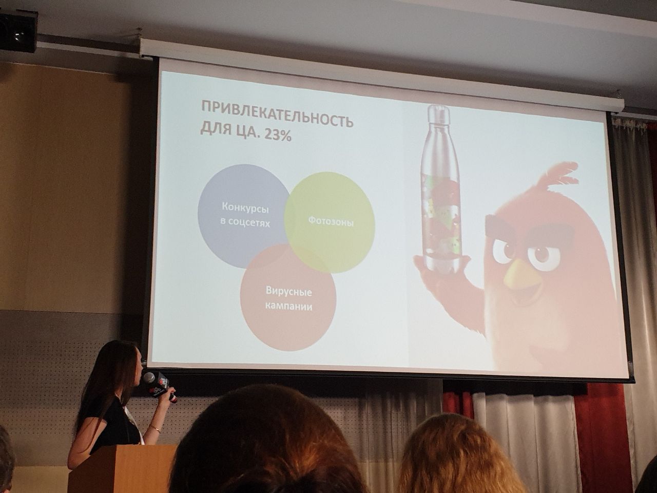 Начинается первая секция докладов. Я выбрала выступление "Культовый мерч для ваших мероприятий: промоподарки, которые работают". Выступает менеджер по внешним коммуникациям компании Проект111 Алия Кешишьян