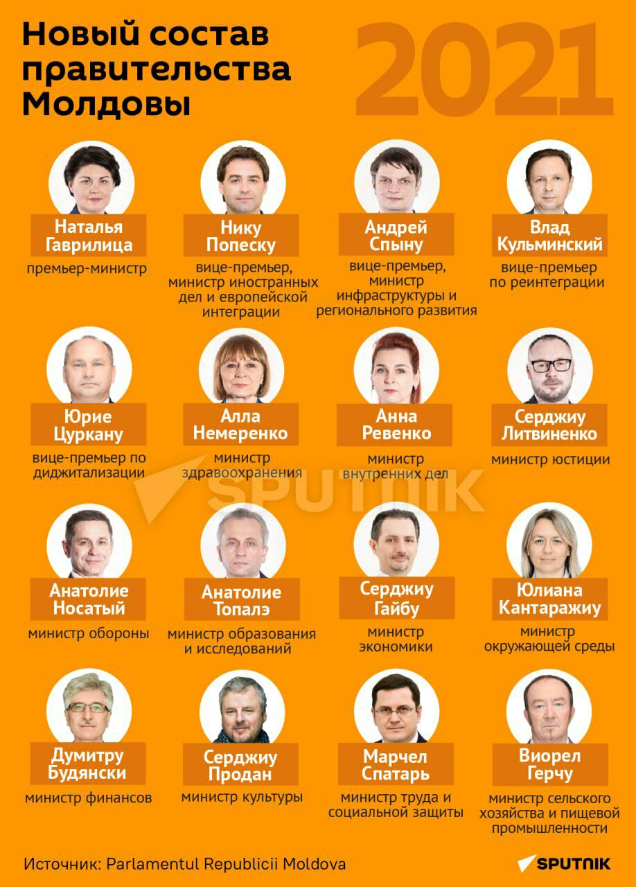 Парламент Молдовы утвердил состав нового Правительства. Премьер-министром стала Наталья Гаврилица. В администрации Президента пройдет церемония приведения главы Правительства к присяге. Стоит отметить, что политическое руководство страны состоит исключительно из граждан Румынии. Президент Молдовы Майя Санду, спикер парламента Игорь Гросу и глава Правительства Наталья Гаврилица имеют румынские паспорта.