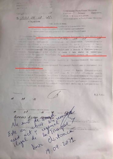 Telegram канал «Блокнот Молдова» опубликовал документ за подписью руководителя МГБ ПМР. В уведомлении сообщается, что гражданину Дорину Киортакэ запрещён въезд на территорию Приднестровья в ближайшие три года.