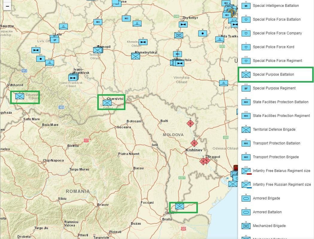 Украина держит по батальону войск специального назначения в Черновцах и Закарпатье, рядом с границами Румынии и Венгрии, а также целую пехотную бригаду к северо-востоку от Галаца в Буджакской зоне.