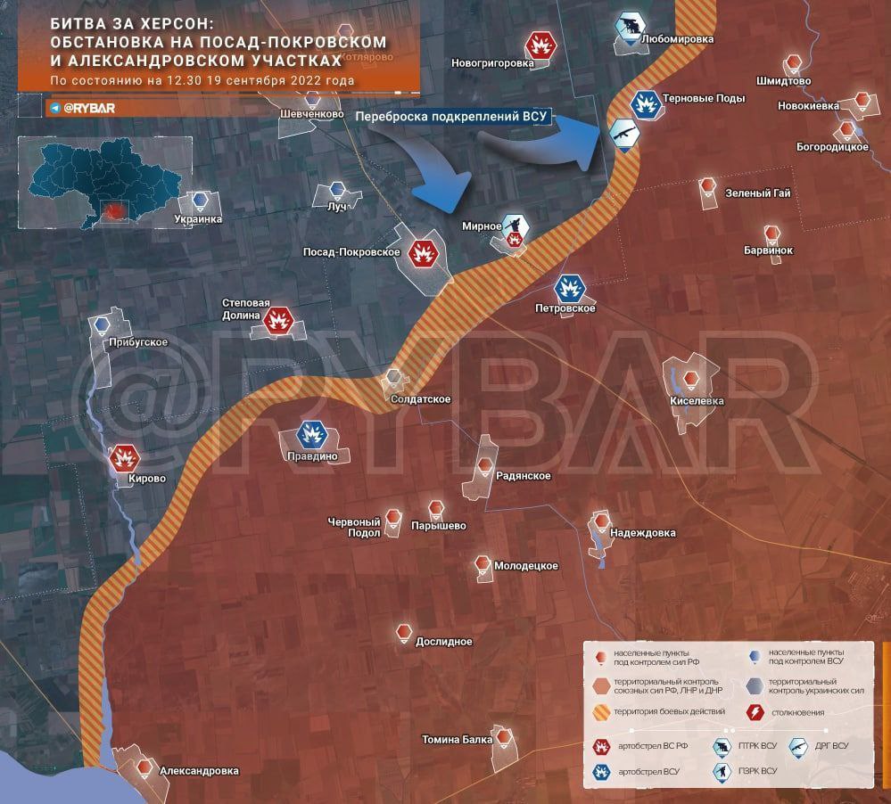После нескольких провальных попыток штурма позиций ВС РФ существенных изменений в обстановке на линии фронта нет. Подразделения ВСУ перешли к позиционной обороне и восстановлению боеспособности, ведётся переброска подкреплений и накапливание ударного потенциала. На линии соприкосновения продолжаются артиллерийские дуэли.