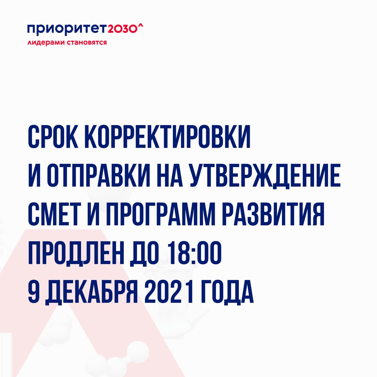❗️Сроки подачи скорректированных смет и программ развития в личном кабинете университета участника программы Приоритет 2030 продлены.