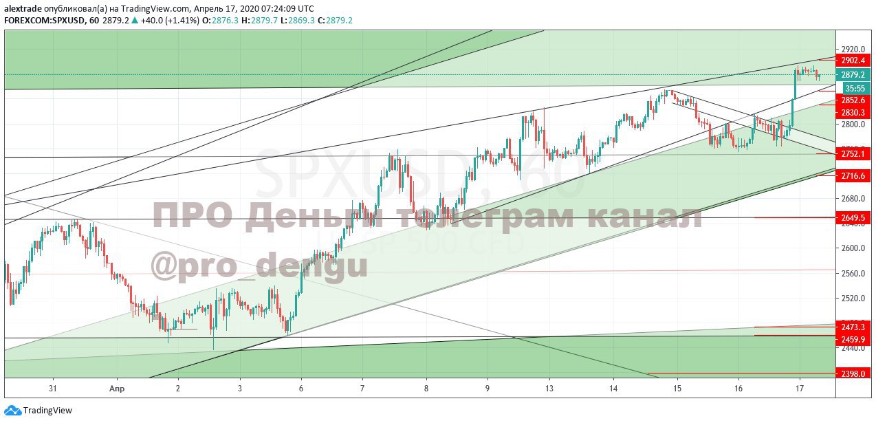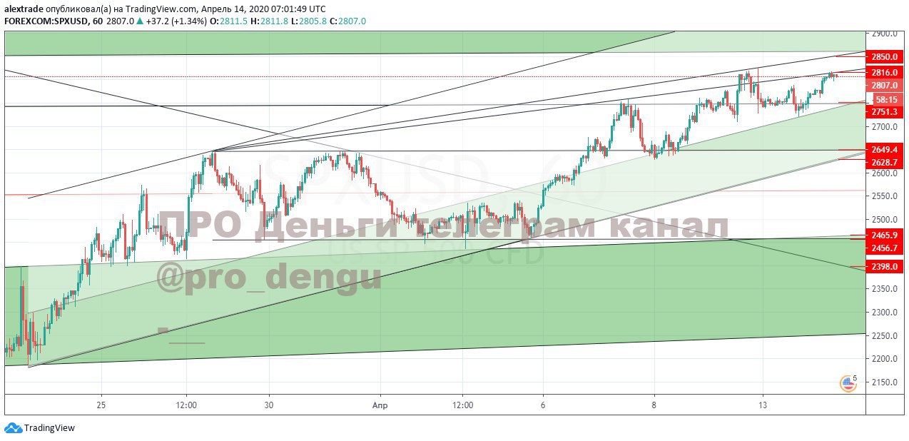 Пока ничего не делаю, первое закрытие часа ниже 2823, первый шортовый сигнал с потенциалом 2750 и далее 2650. Вверху 2920. Инициатива пока у быков, медведям ждать своего часа. Выросли от конца марта авансом на свежих деньгах ФРС. @pro_dengu #SP500