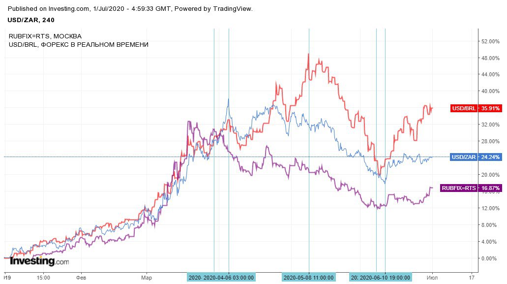 И внутренний голос (динамика ОФЗ, динамика нефти, все что сильно влияет на платежный баланс РФ) мне подсказывает, что он останется самый сильный среди этой троицы в 2020 году. Но пока мое вью неизменно, попадает рубль в июле, это уже происходит 71,27 закрытие июня 😊. @pro_dengu