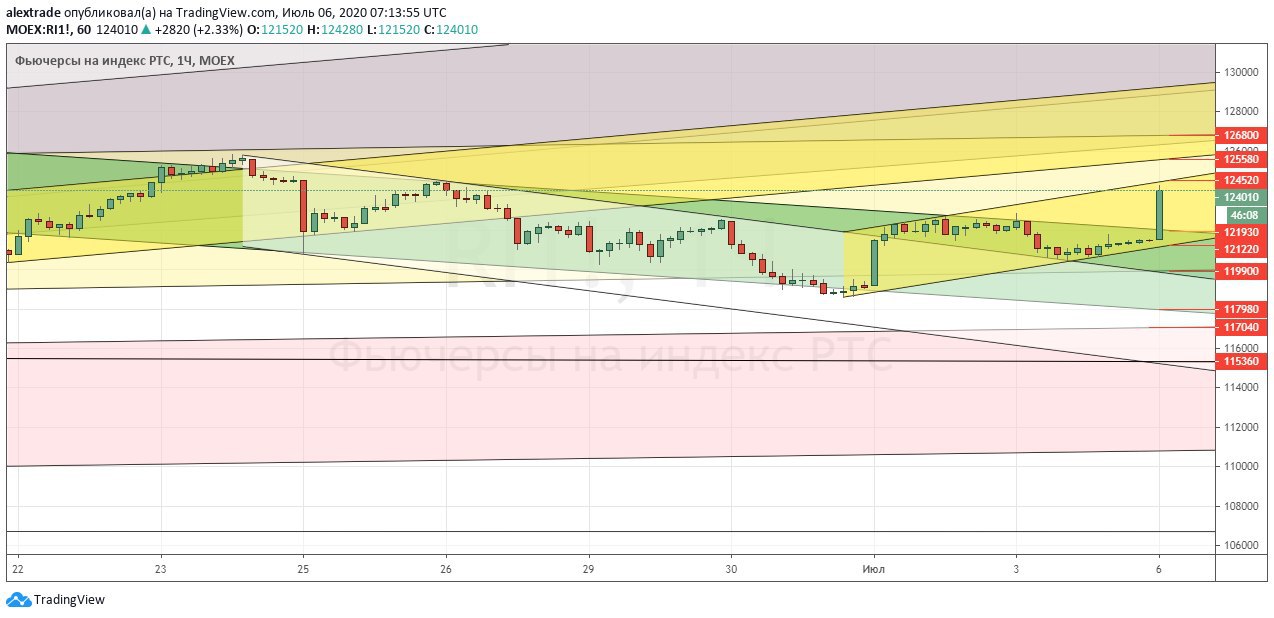🇷🇺Фьючерс на индекс РТС (Ри) 120 360 в моменте, похоже мы наконец вывалились из боковика (темно серый канал) 120 670-127 510, мы тестируем снизу сейчас нижнюю границу этого боковика, это уже третья попытка, первый прокол был 15 июня, второй 30 июня, даже день закрывали ниже, сейчас идет третий,. 117 600+ поддержка, но основная зона 115 250-115 450. Ри сейчас слабее SP 500. Ри любит падать на опережение. Медка должны налить медведям в Ри, разводная шпилька на 126 940 вчера уже была. @pro_dengu #РТС